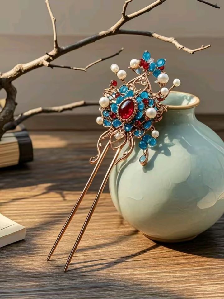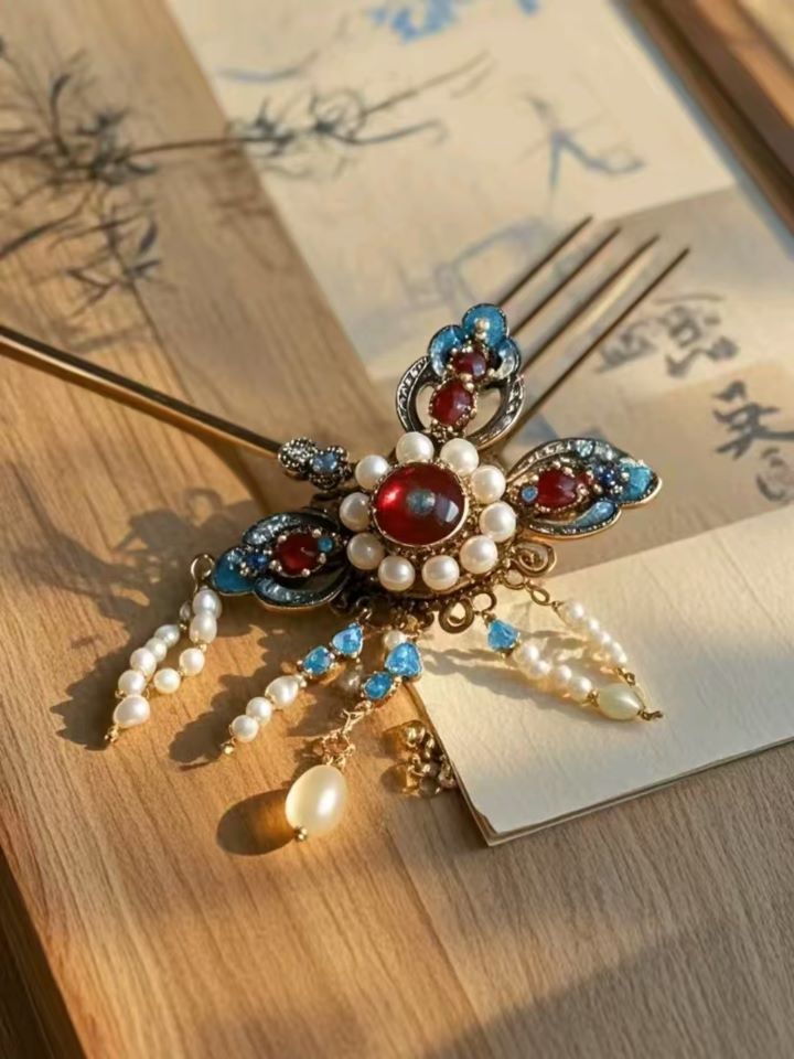 華,散發(fā)著柔和溫潤的光澤。此簪無論是斜插于發(fā)間,伴青絲搖曳,彰顯東方女性的溫婉與優(yōu)雅,還是作為收藏珍品,置于錦盒之中,都承載著千年古風(fēng)的獨(dú)特魅力,讓人不禁沉醉于那如夢似幻的古典情境之中。